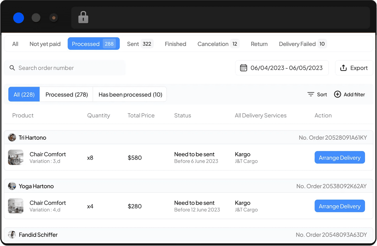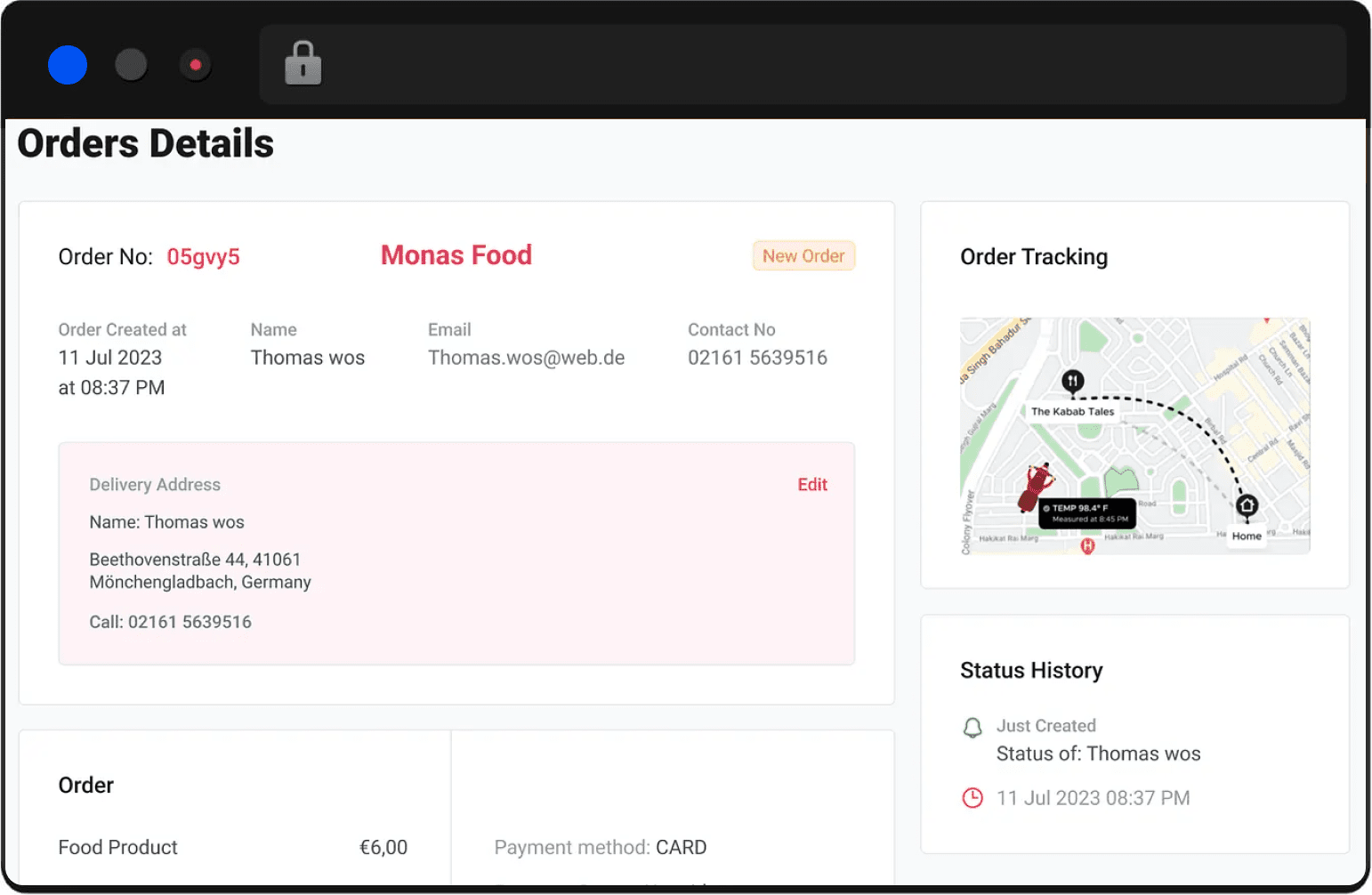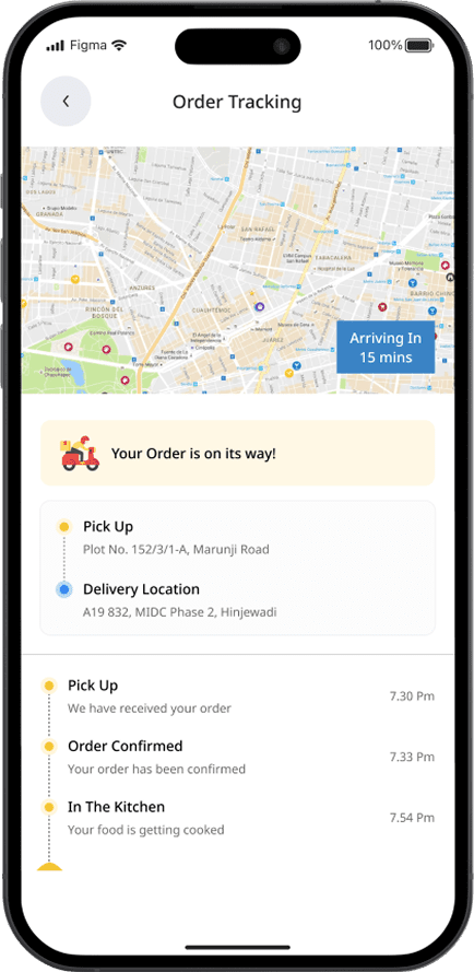 This feature empowers delivery executives to set the status of the order as waiting on the way, delivered, or canceled.
