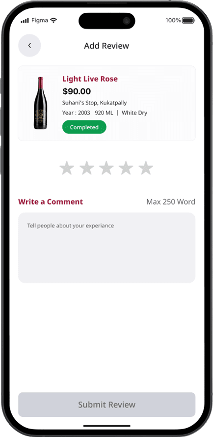 Rate the quality of liquors and services, and share your feedback on the on-demand liquor delivery app.