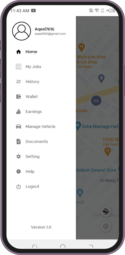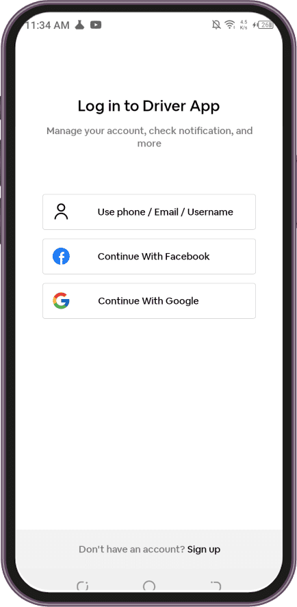 Using this option, delivery agents can register on the application through email ID, contact number, and social media accounts.