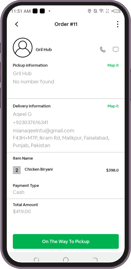 Using the app, the driver can check out the list of delivery items along with the essential information like customer location, delivery instructions & more.