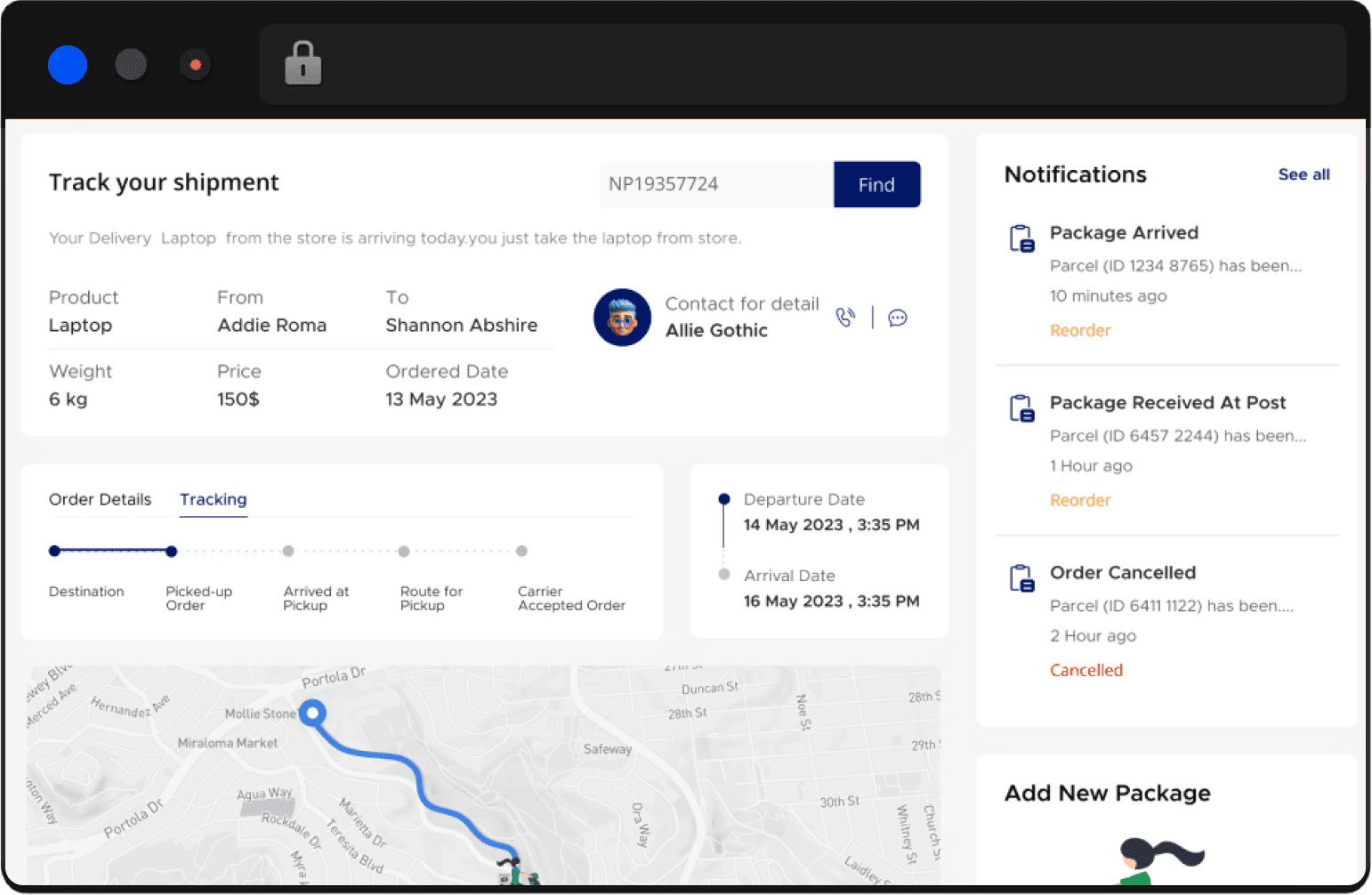 Thanks to integrated Google Maps in the app, the delivery agent can get the shortest route possible to deliver the package on time.