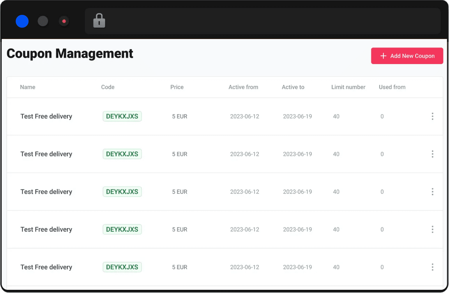 List of Delivery Items