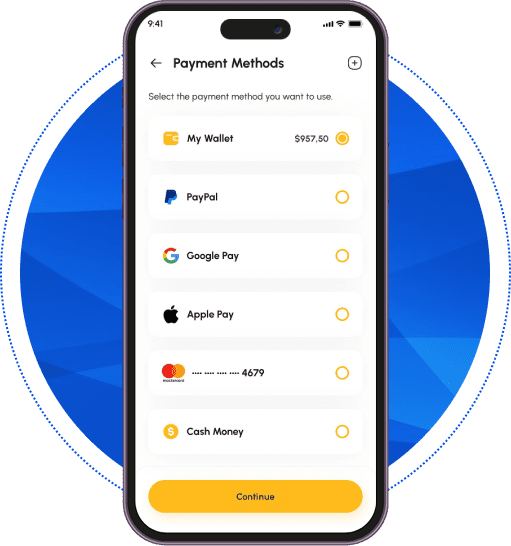 Pay effortlessly with multiple payment options such as Credit/Debit cards, Cash, E-wallets, and more.