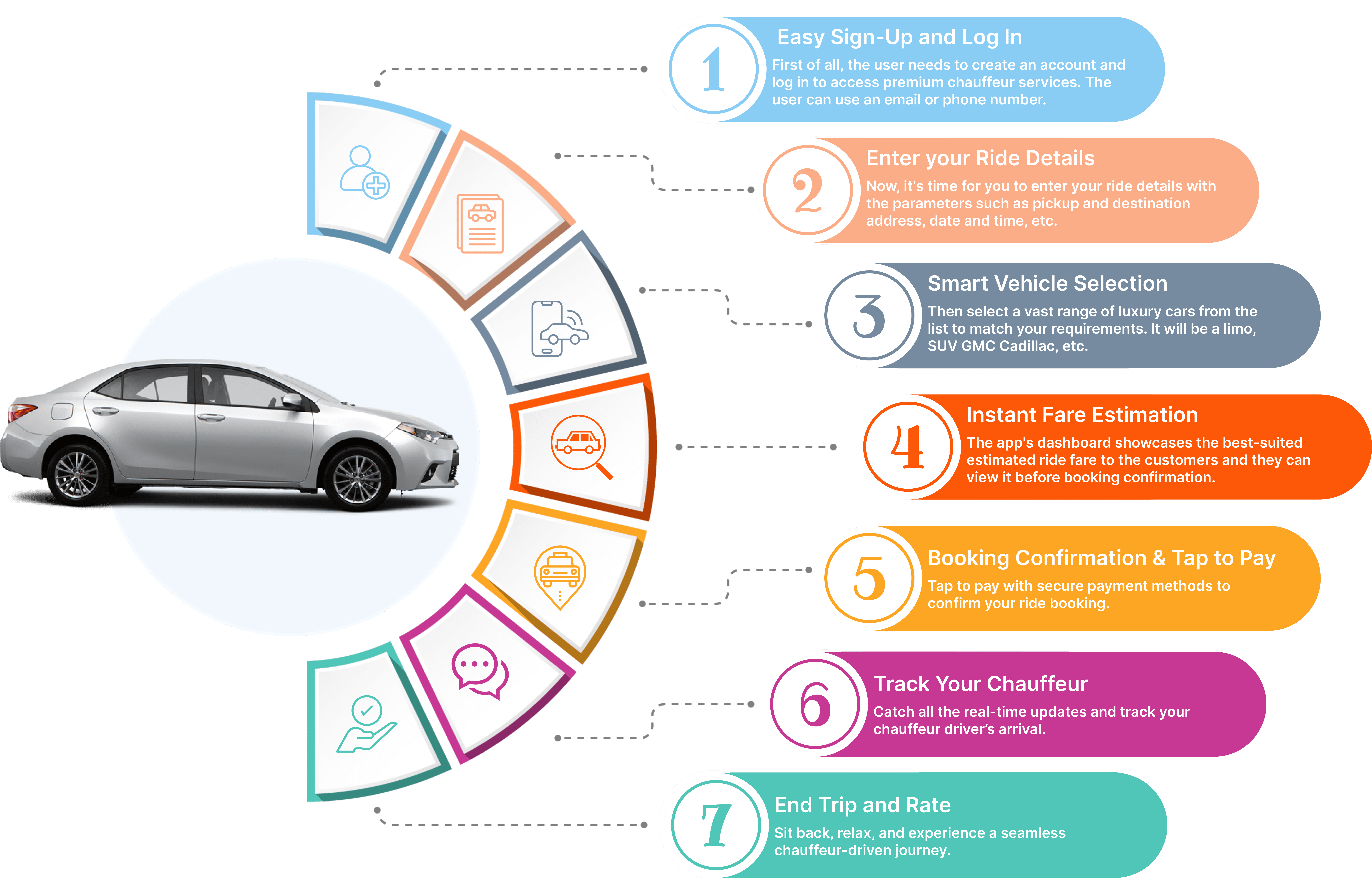 As a business owner, you should need to know about the idea and working model of the application. Here we have some crucial steps of an innovative chauffeur booking app solution: