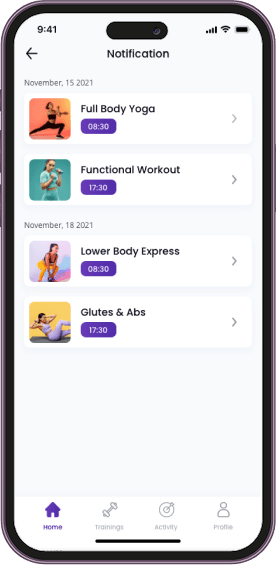 Receive alerts for workouts, goals, and updates.