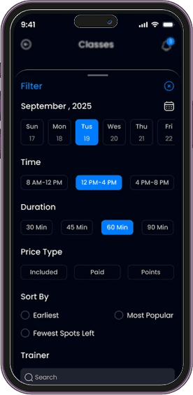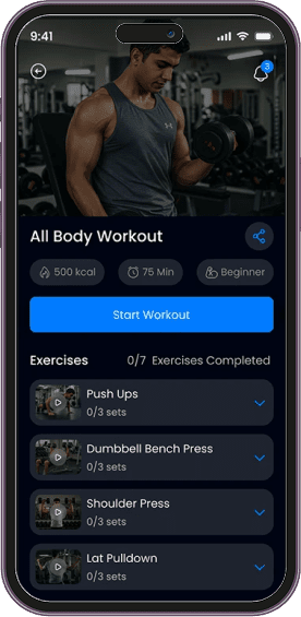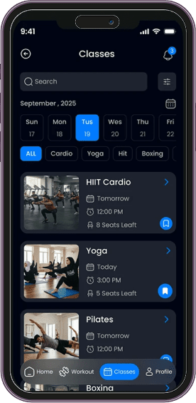 Our fitness app development package includes all essential features required for user engagement and business growth. This typically covers user registration, workout tracking, diet and nutrition plans, progress monitoring, push notifications, live or on-demand classes, and in-app communication with trainers.