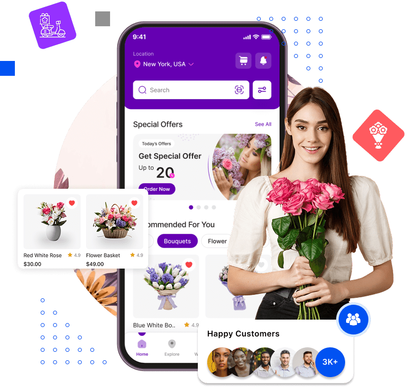 Typically, a flower delivery app is defined as a digital solution for florists to let customers order flowers and get super-fast deliveries to their doorsteps. Here, all the users will get the comfort of performing business tasks through the app with an extension to survive in this highly competitive market.