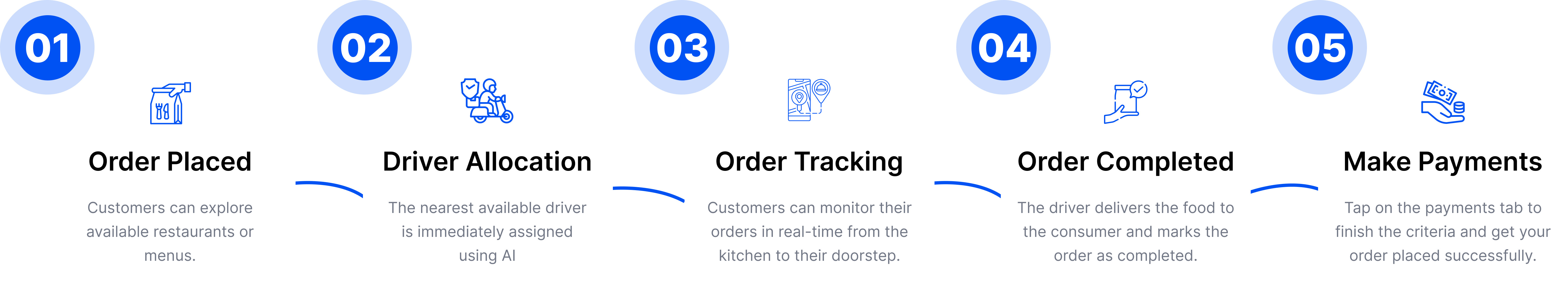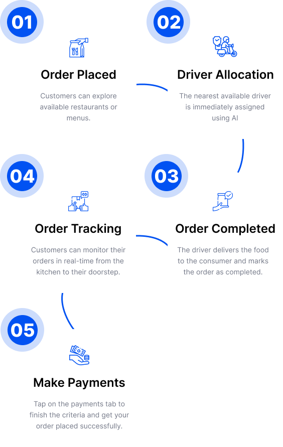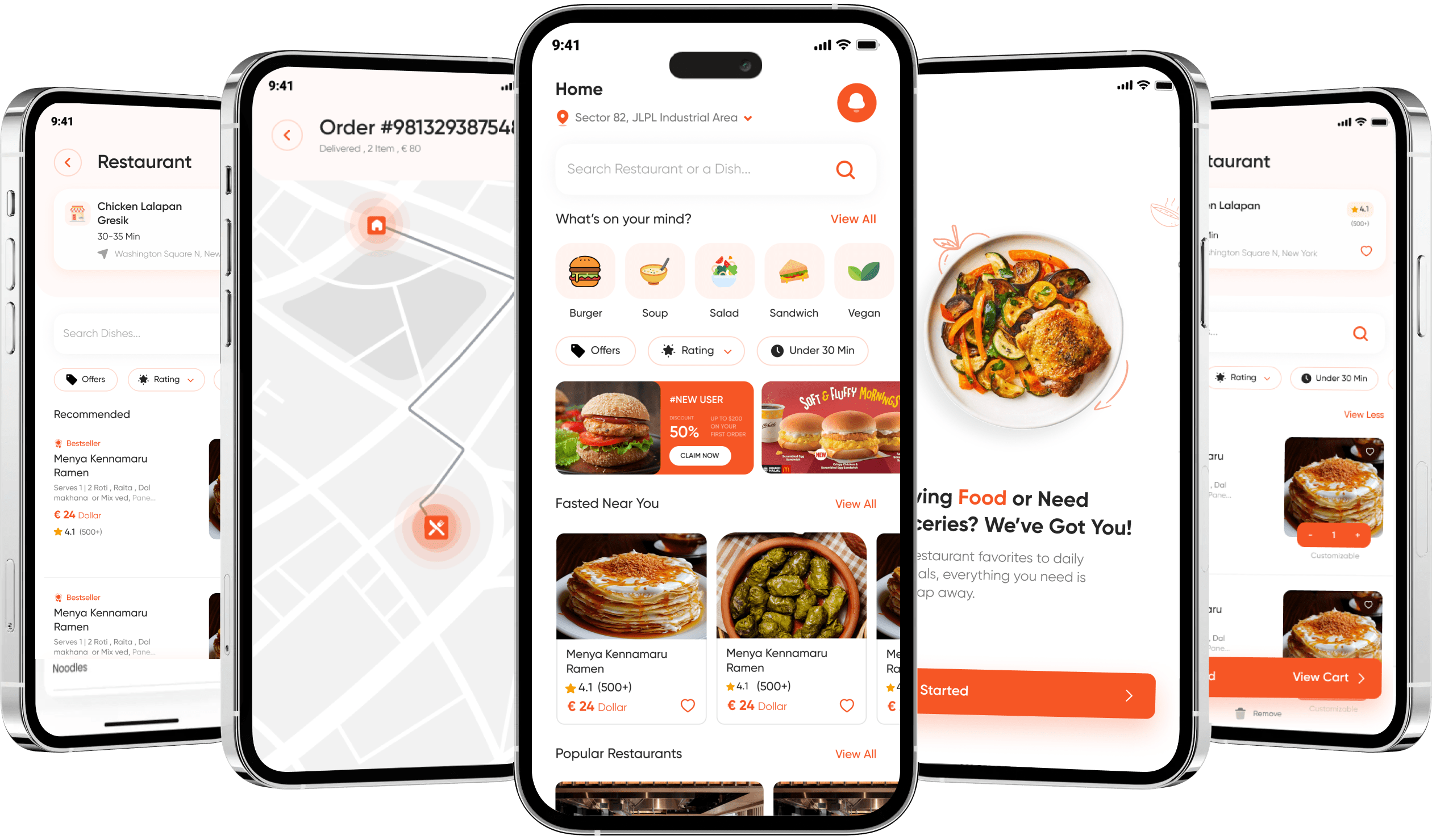 Our super-convenient and intelligent food delivery application development process contains a stack of specialized apps and admin panels that are specifically designed to streamline the entire food delivery process with increased service efficiency. Powered by AI, our app is a complete solution for taking your food delivery business to the next level.