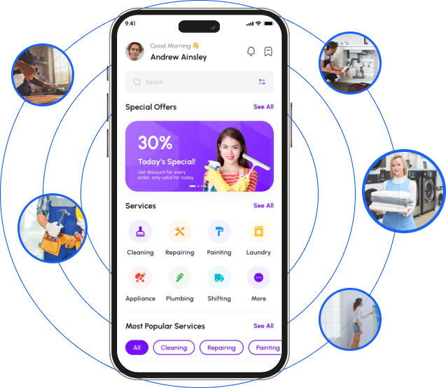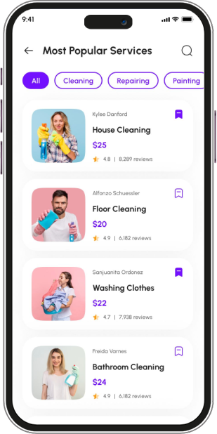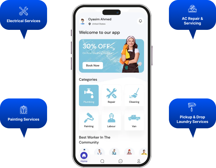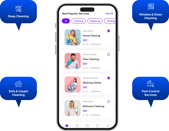 With our on-demand handyman app development services, you can elevate your on-demand handyman services such as cleaning, plumbing, and mowing to new heights.
