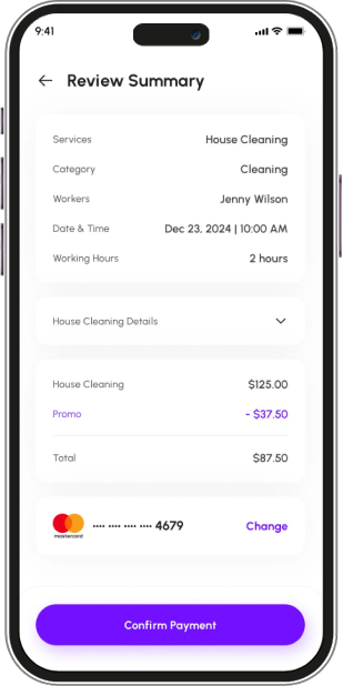 “I normally hate finding a person to do home repairs, but this app revolutionized the experience. I hired a handyman to do some drywall repairs and install lights. He showed up on time, fully prepared, and got the work done professionally. The GPS tracking was super helpful, and paying via the app made the whole process stress-free. Brilliant service!”
