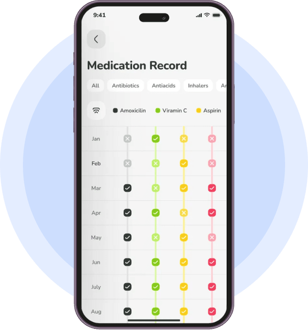 Never miss a dose or a doctor’s appointment with our intelligent reminder system. It offers multiple benefits:
