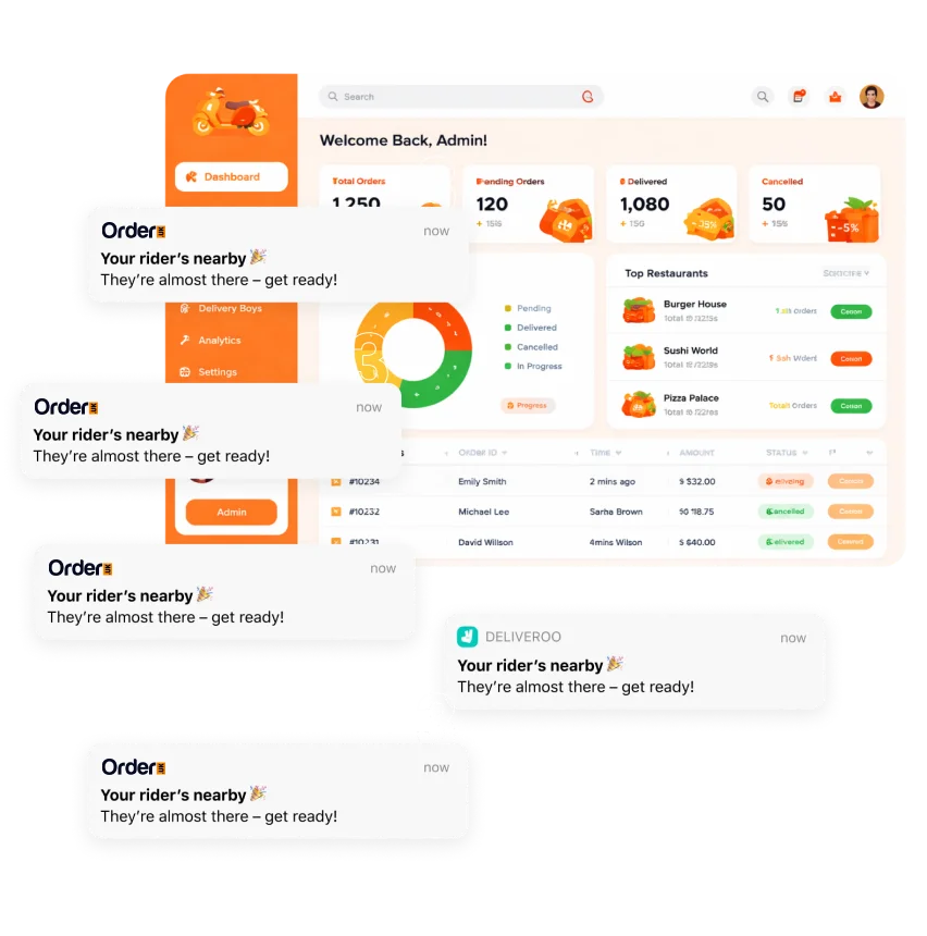 Our platform delivers powerful performance through real-time tracking, automated delivery workflows, efficient restaurant management, and a seamless user experience across every device.