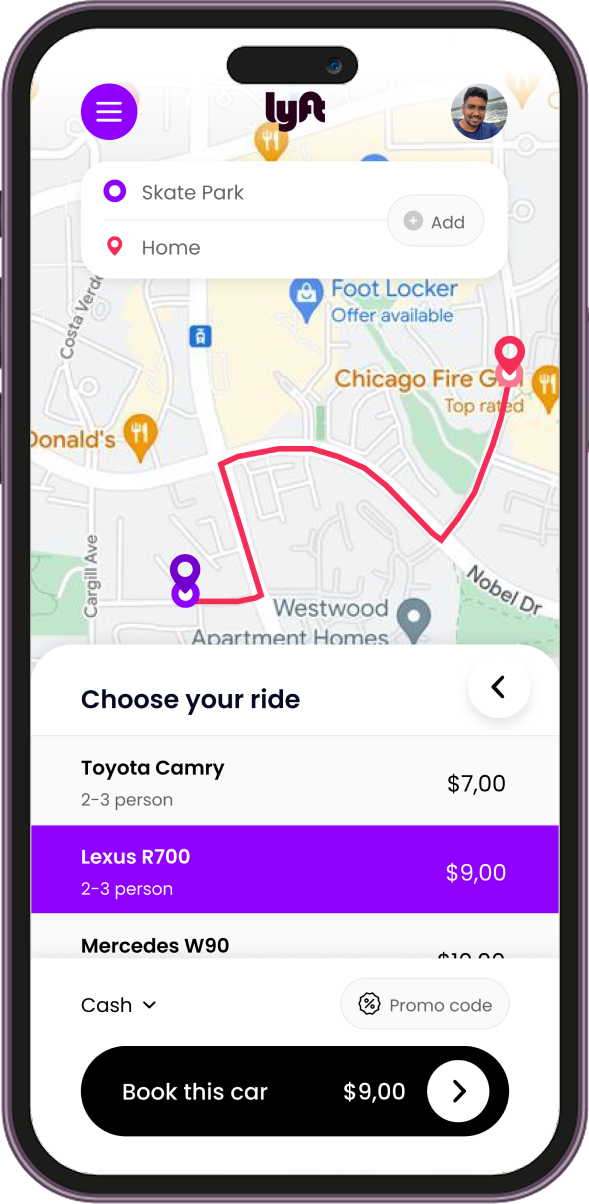 We offer our Lyft Clone App with trendy, easy-to-use themes for Android and iOS users.