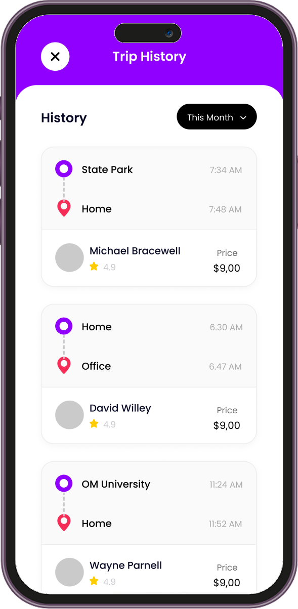 Our app uses AI algorithms to dynamically set ride fares based on real-time factors like demand, weather, traffic, and competitors' prices. This provides riders and drivers with fair and competitive fares.