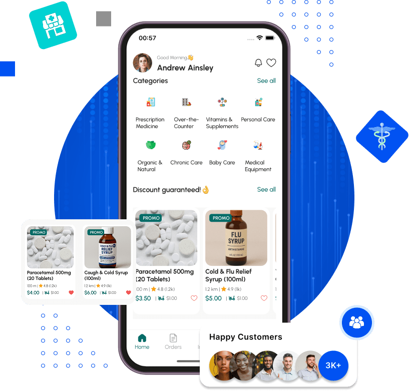 Our scalable pharmacy delivery app solution is powered by ample unique features and functionalities that empower your medical store operations and processes with ease.