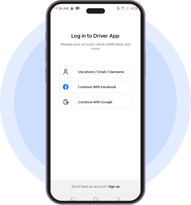 In this app, the driver can seamlessly and conveniently sign up for the app with parameters like phone number or email address.