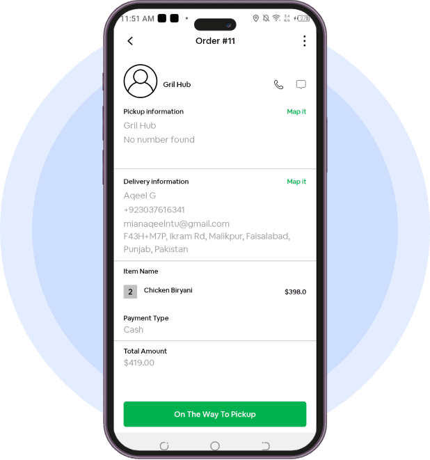 This feature allows drivers to get complete order details with information like customer info, delivery location, order status, and more.