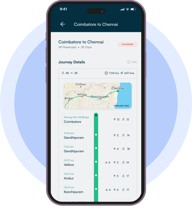In this step, passengers can put their pickup and dropoff details, view the best possible routes, and plan their journey accordingly.