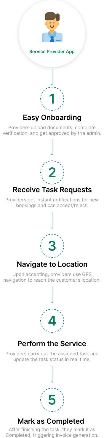 Let customers track service providers live on the map. Improves transparency, accuracy, and arrival-time expectations.