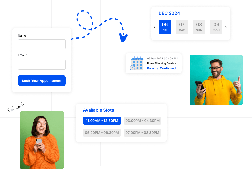 Our smart appointment scheduling software is a detailed solution meticulously developed to automate bookings for every industry you're working in. It improves operational efficiency and delivers exceptional user experiences.