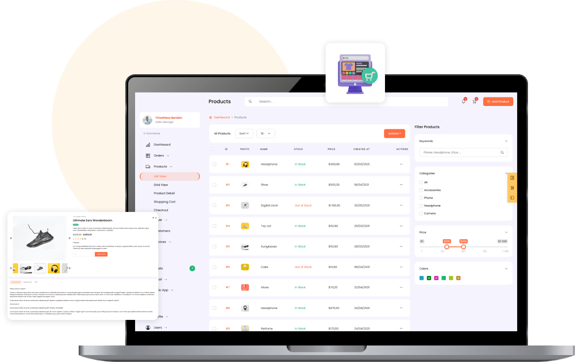 The Admin Panel offers detailed control over operations from inventory to sales analytics. Also, the panel allows you to keep an eye on the entire process including sales.
