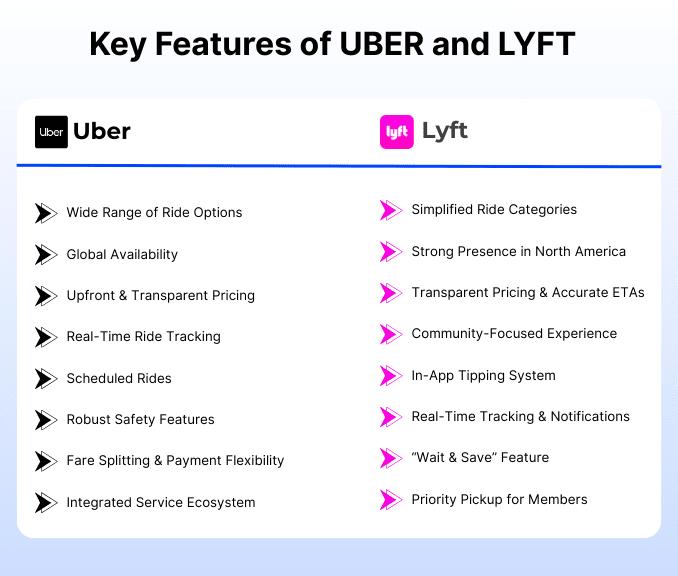 Key Features of UBER and LYFT