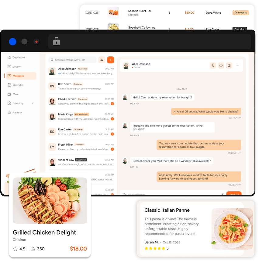 Customer Feedback Analysis AI can analyze customer reviews and feedback to improve service quality and restaurant offerings.