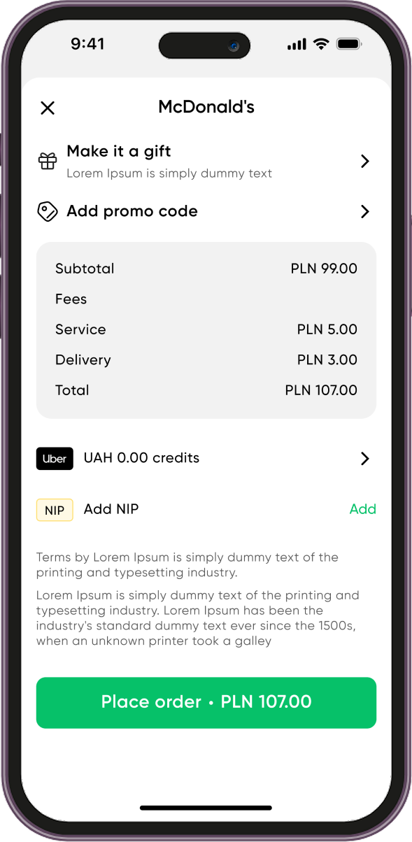 Payment Invoice Send a detailed order invoice to your patrons through the pre-built UberEats Clone App.